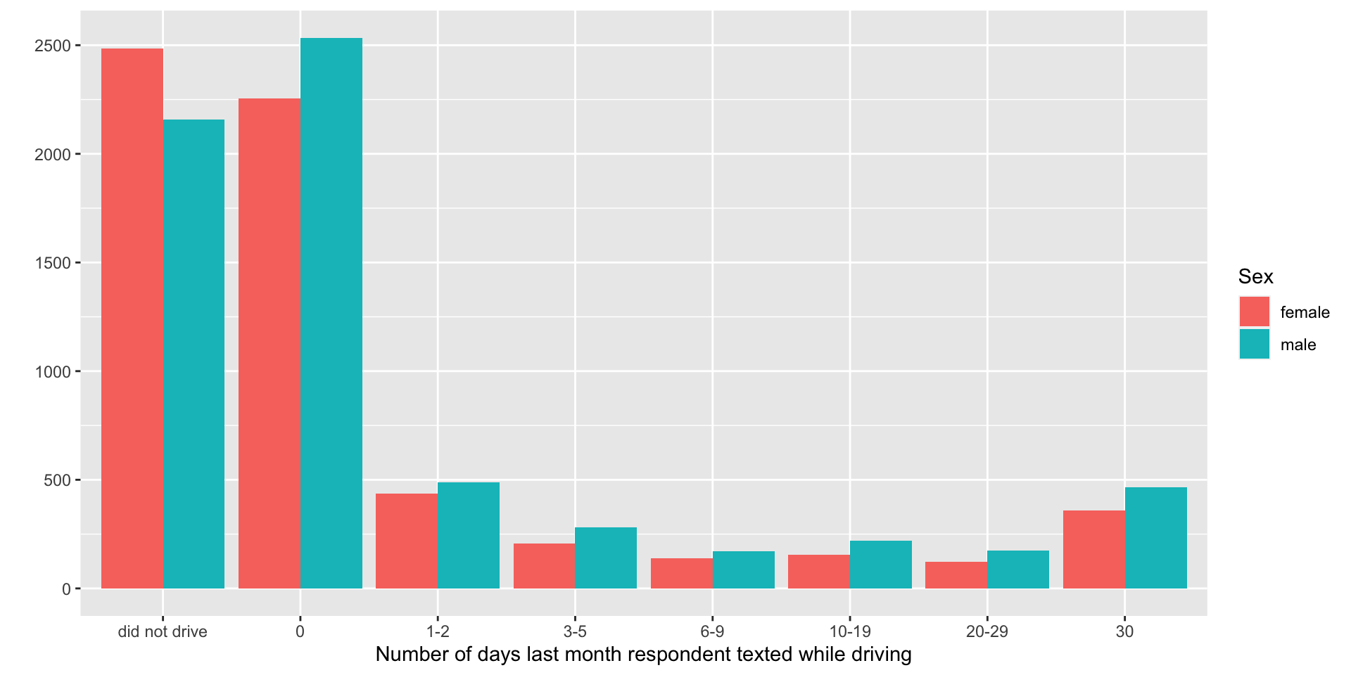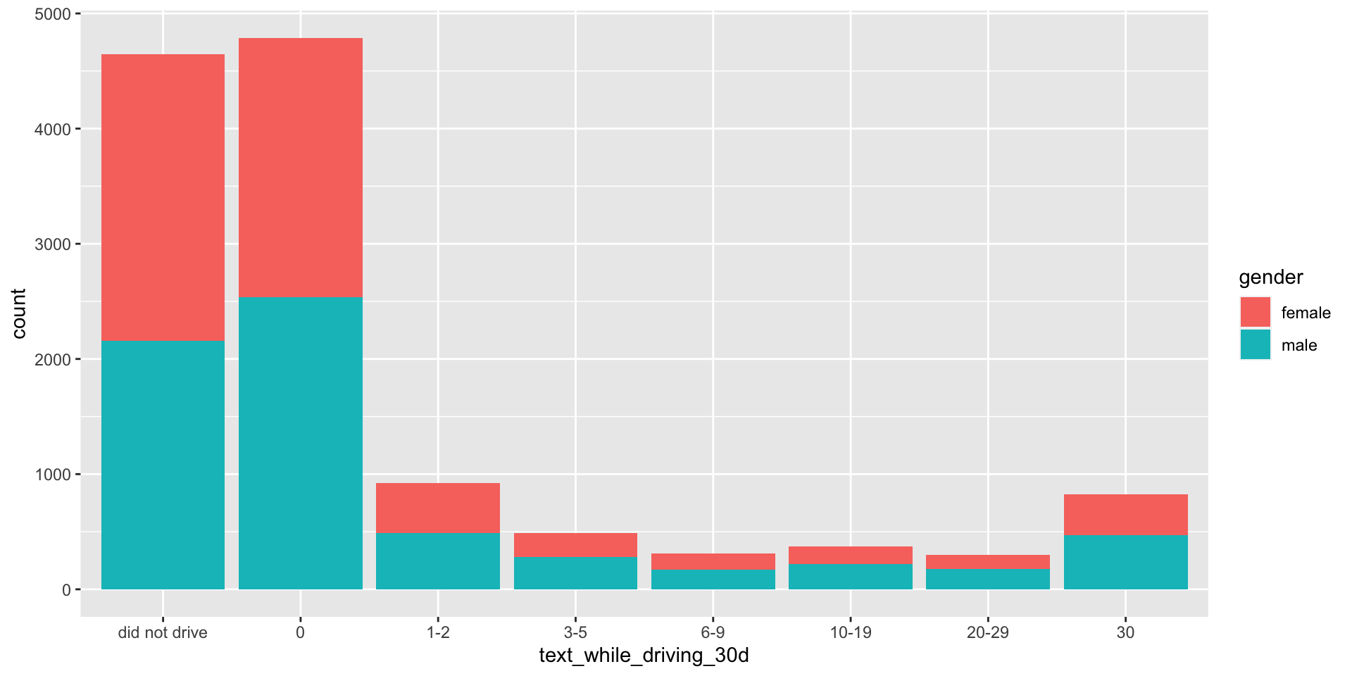 filter(!is.na(gender) & !is.na(text_while_driving_30d)) |> # remove missing data